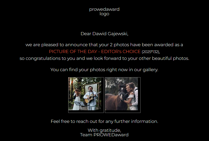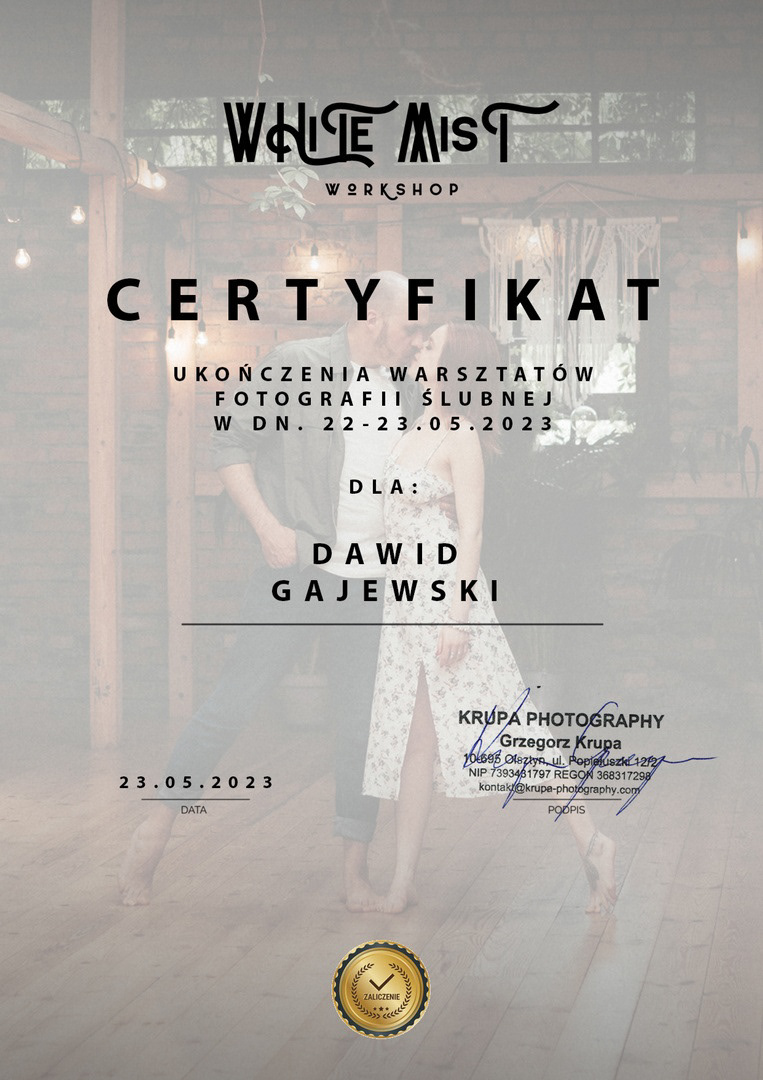 W życiu miałem naprawdę wiele pasji, jednak fotografia stała się tą jedyną. Jest jak bezgraniczna miłość od pierwszego wejrzenia. Sprawia to, że w każdą sesję wkładam całe swoje serce i zaangażowanie, jak również zdobytą wiedzę i doświadczenie. Wszystko to podparte jest filarem w postaci wysokiej klasy sprzętu.